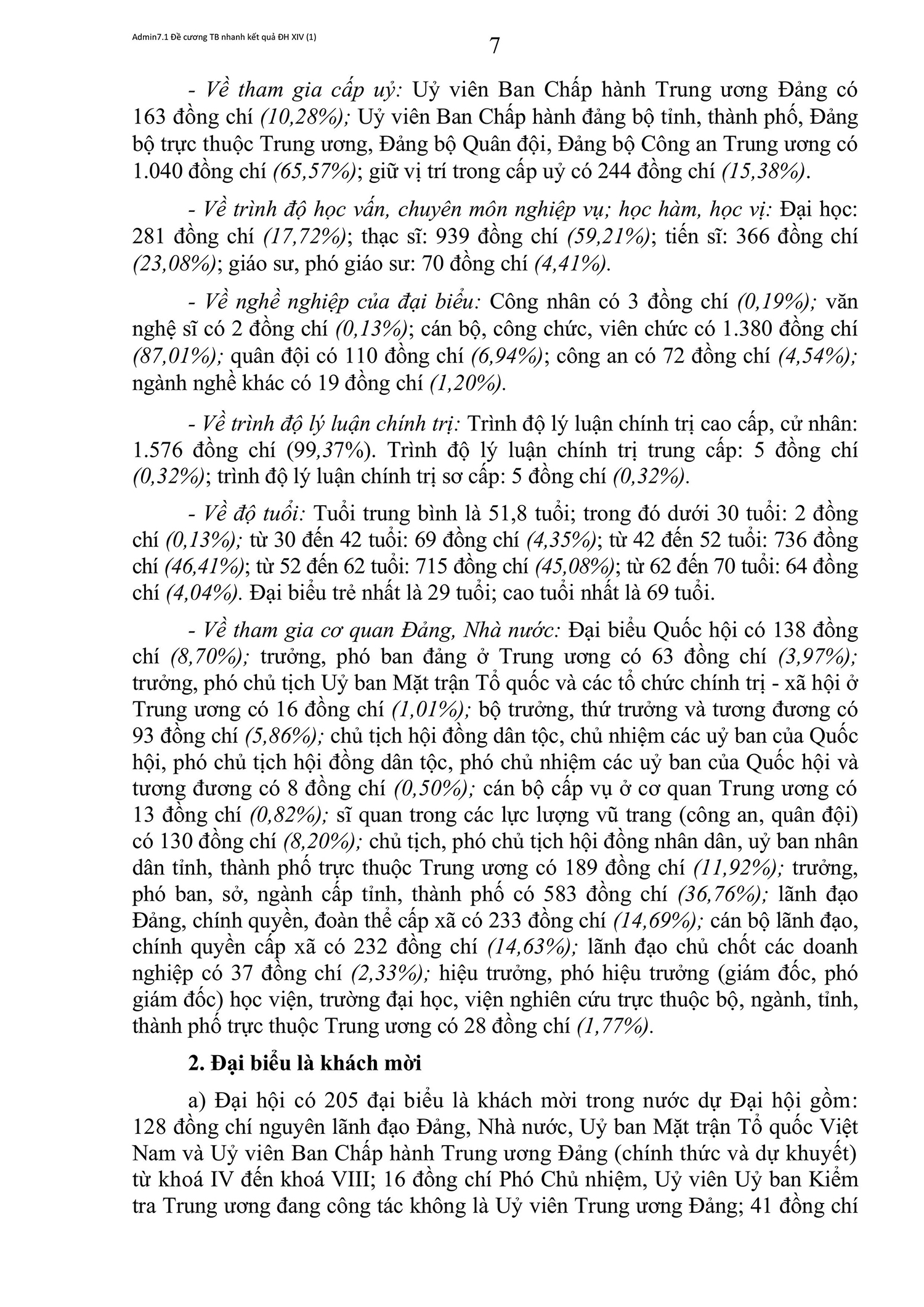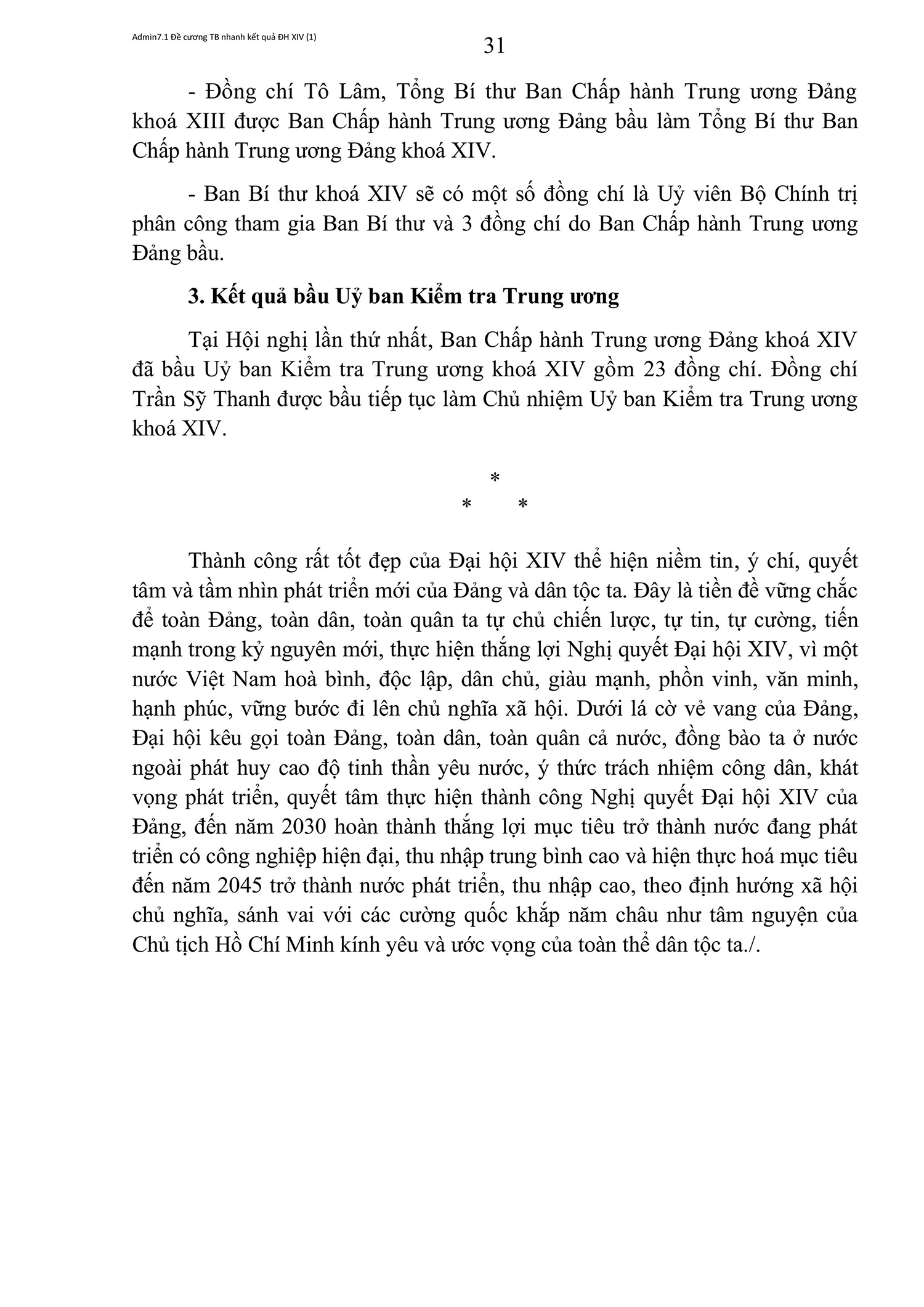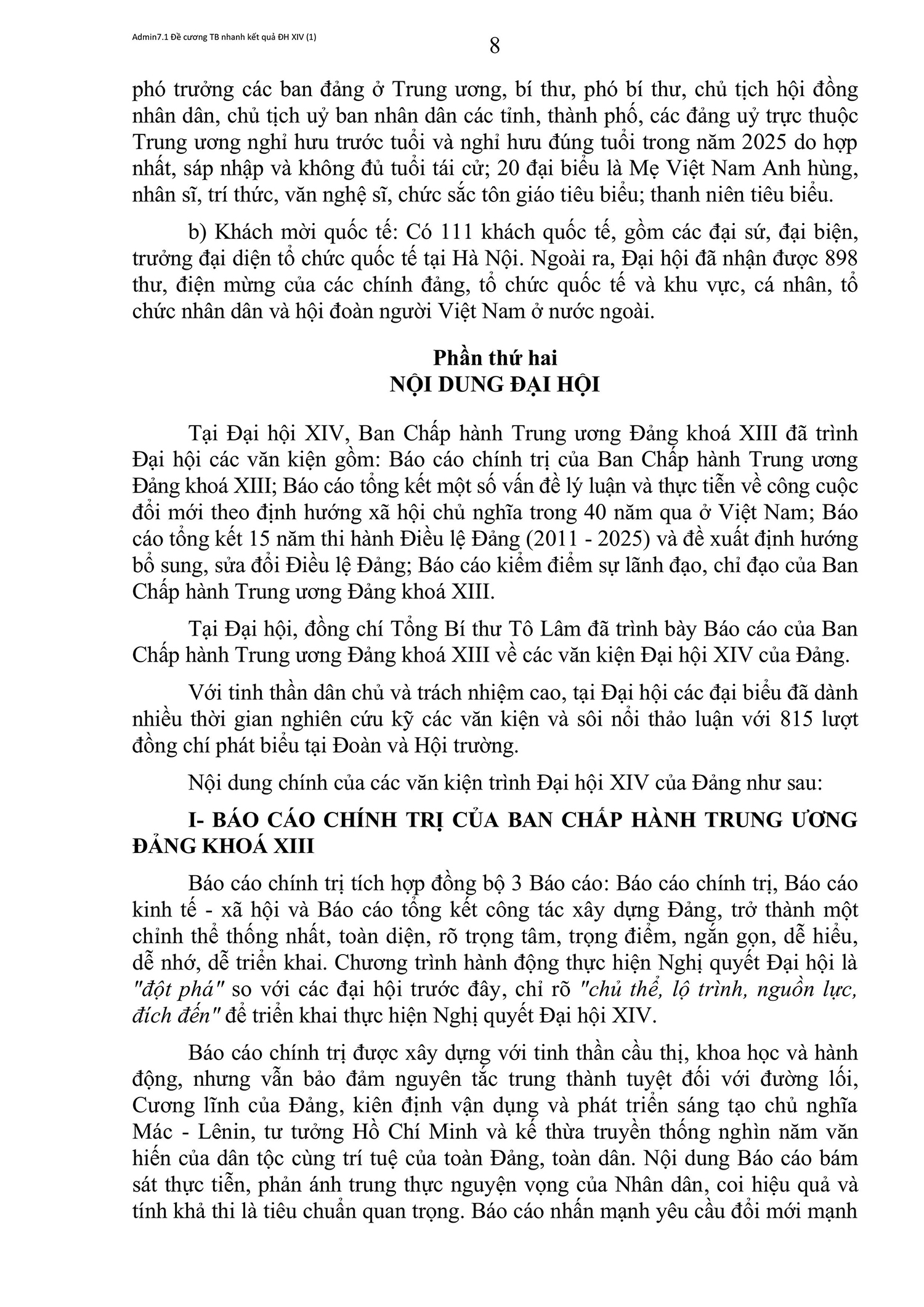Kết quả đại hội đại biểu toàn quốc lần thứ XIV Đảng Cộng Sản Việt Nam