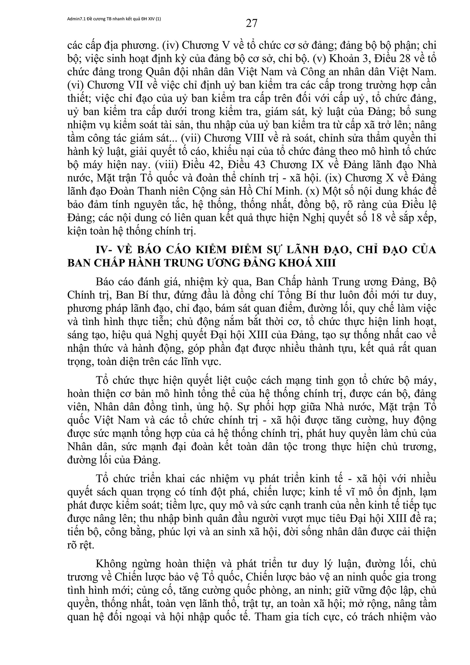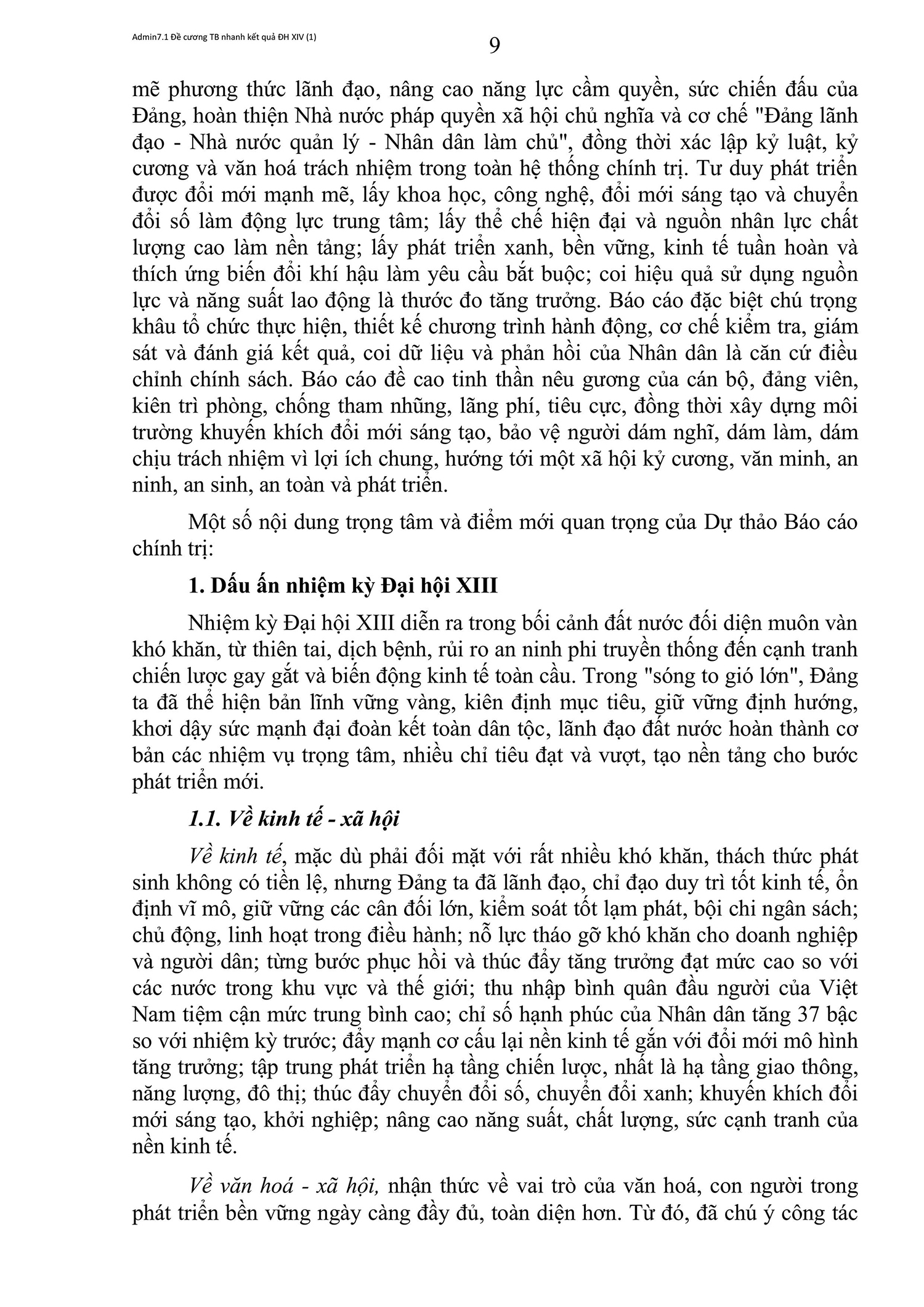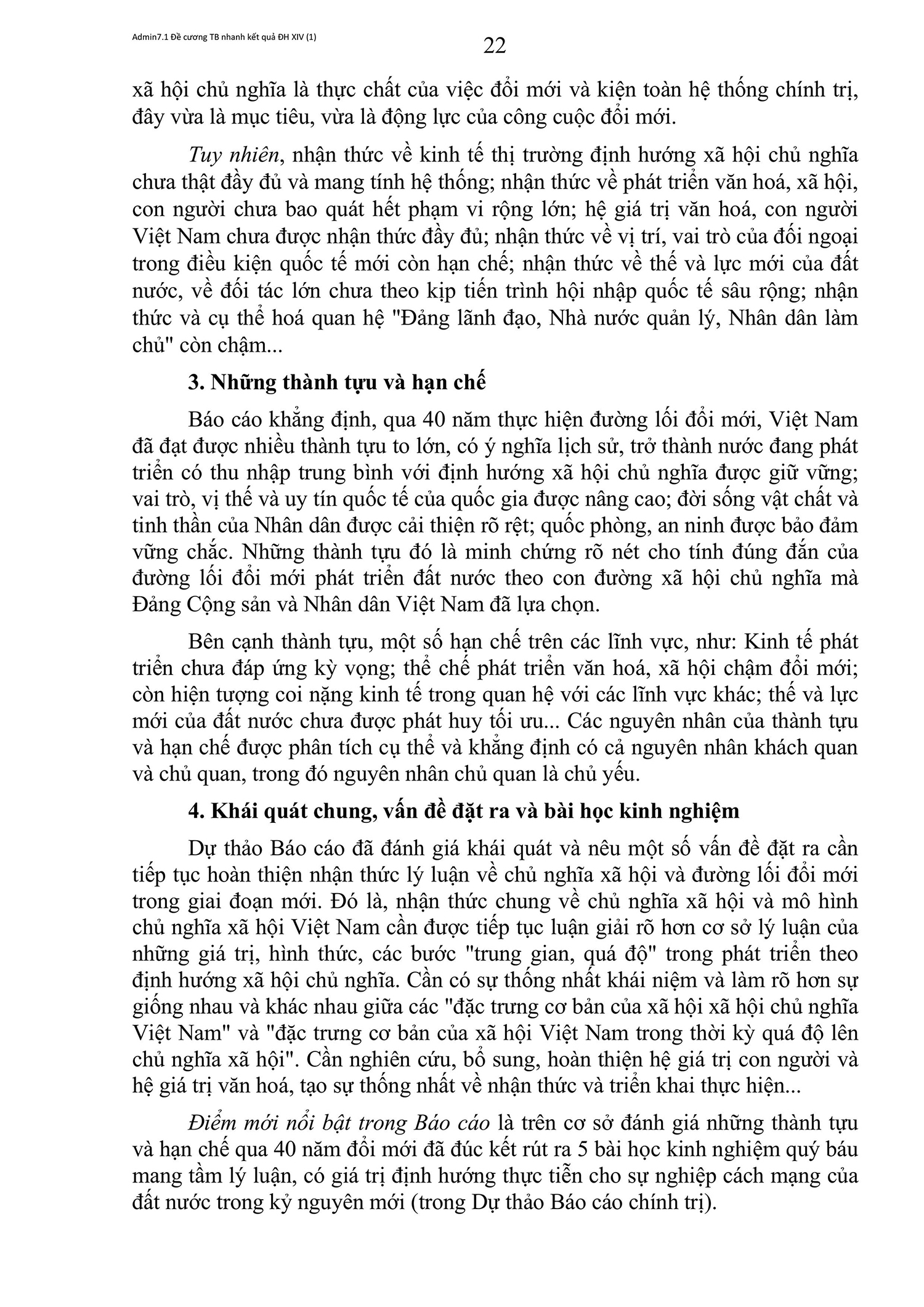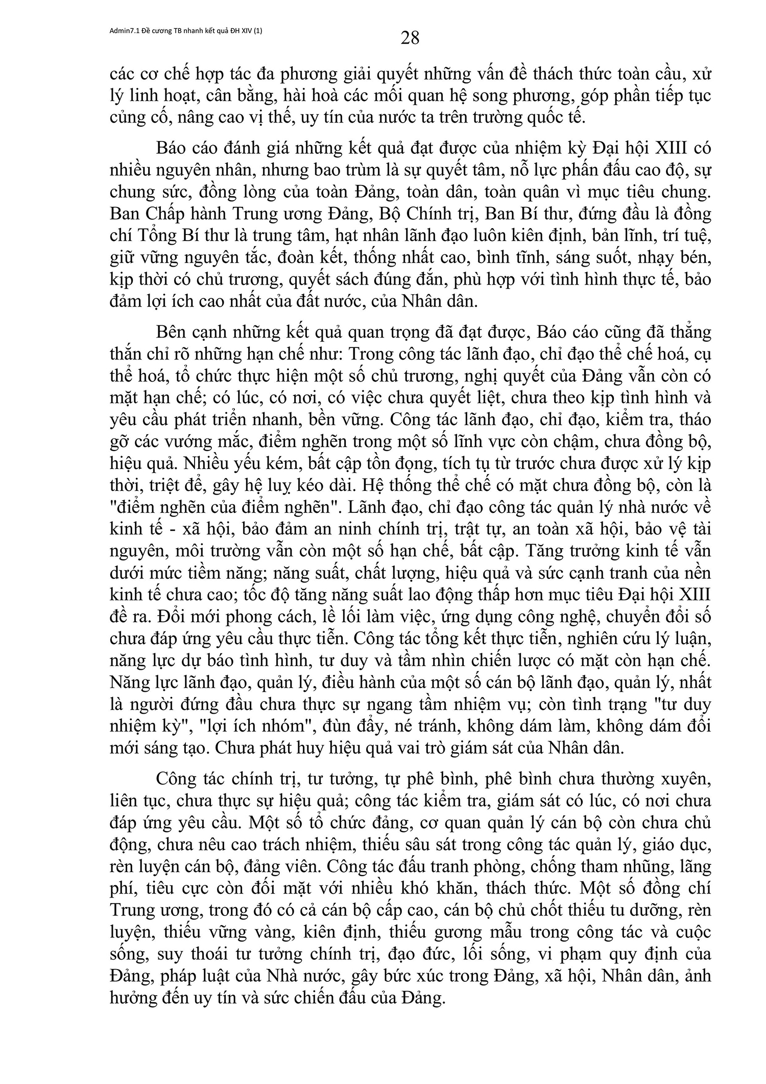 Kết quả đại hội đại biểu toàn quốc lần thứ XIV Đảng Cộng Sản Việt Nam