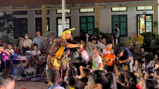 Đêm hội chia sẻ yêu thương khép lại với hoạt động chơi game đố vui về Trung thu và trao quà.