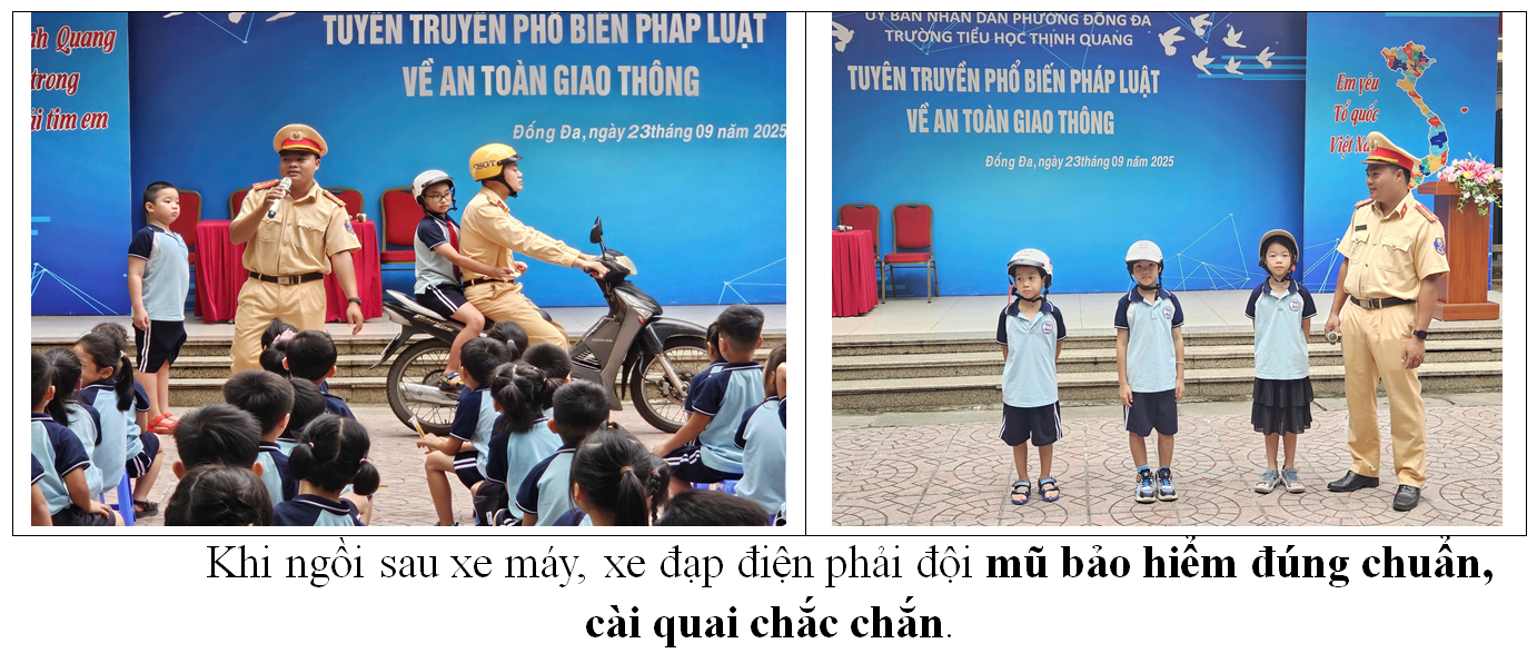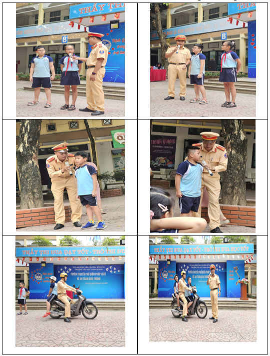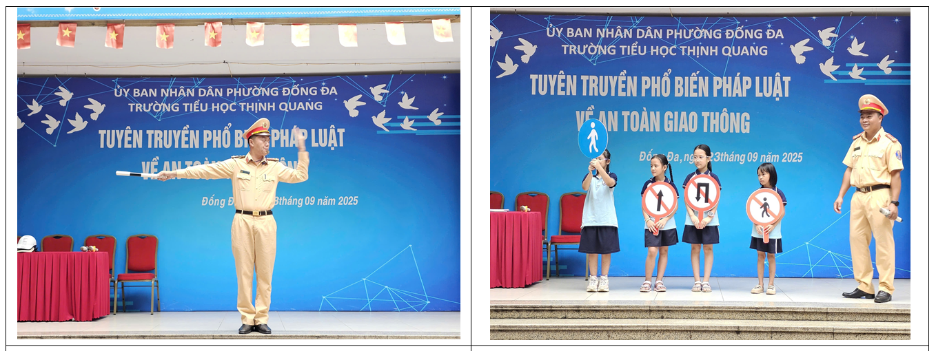 Sáng mùa thu ngày 23/09/2025, trường Tiểu học Thịnh Quang rất vinh dự khi được tiếp đón đồng chí Nguyễn Hoàng Tùng – Cán bộ đội CSGT số 3 và đồng chí Nguyễn Văn Thức – báo cáo viên đội CSGT số 3 thành phố Hà Nội đến tham dự buổi tuyên truyền và giao lưu với học sinh toàn trường.