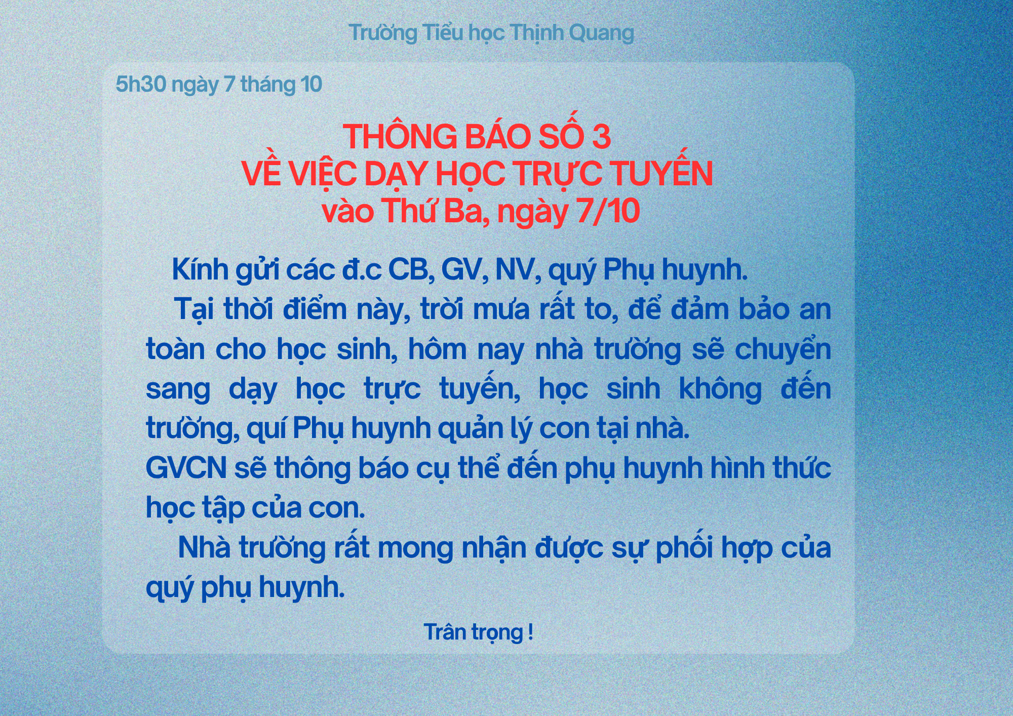 Thông báo 3: về việc dạy học trực tuyến vào Thứ Ba, ngày 7/10
