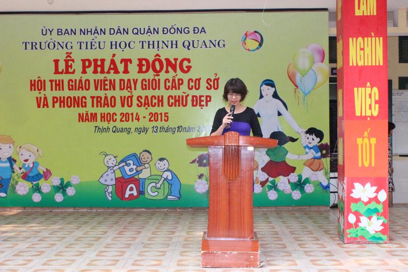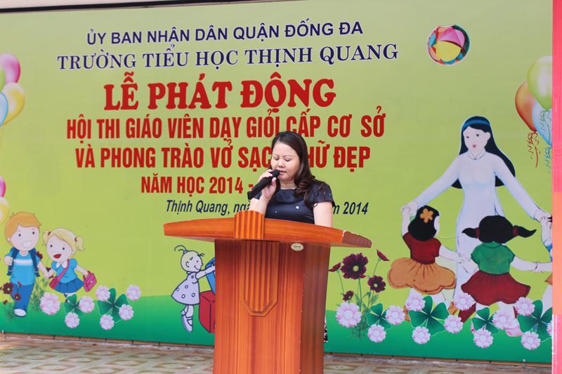 Cô Trần Lan Hương - Hiệu phó nhà trường lên đọc diễn văn khai mạc.