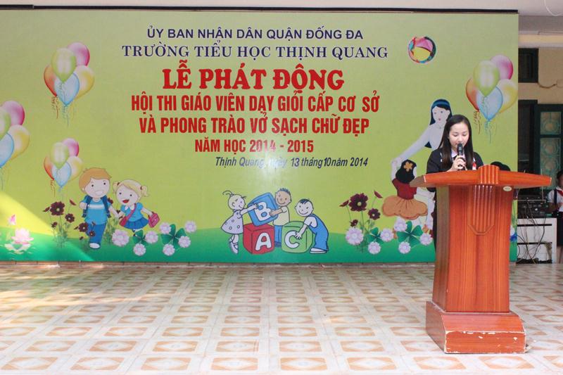 Cô giáo Đinh Trịnh Thúy Quỳnh - Chủ tịch công đoàn lên đọc quy chế, nội dung của cuộc thi.