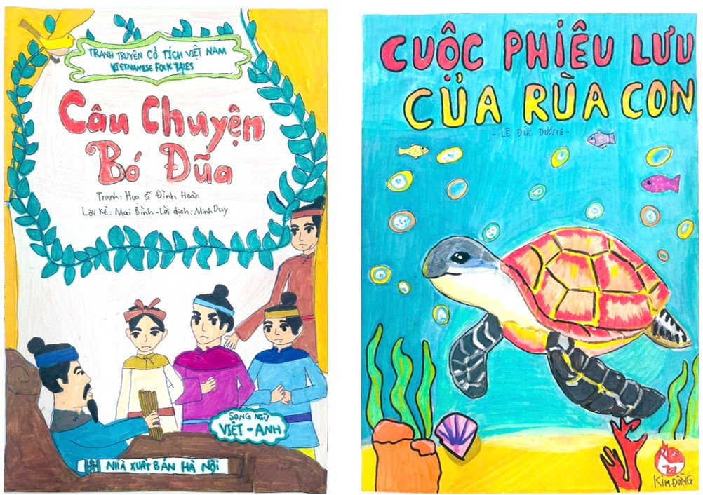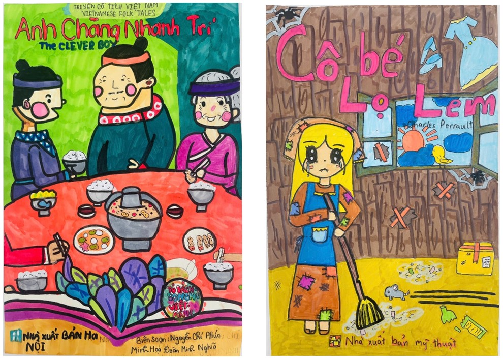 Qua những bài dự thi, có thể thấy sự sáng tạo đáng yêu và phong phú của học sinh Thịnh Quang. Từ hình ảnh cô bé lọ lem đầy cảm xúc, những câu chuyện cổ tích Việt Nam gần gũi như “Cậu chuyện bó đũa”, “Anh chàng nhanh trí”, đến thế giới đại dương sinh động trong “Cuộc phiêu lưu của rùa con”… tất cả đều được thể hiện bằng màu sắc tươi sáng, bố cục rõ ràng và ý tưởng độc đáo. Mỗi bìa sách là một “cánh cửa nhỏ” mở ra thế giới tri thức rộng lớn, nuôi dưỡng tâm hồn và trí tuệ cho học sinh.