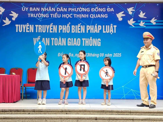 Nhằm nâng cao nhận thức và kỹ năng tham gia giao thông an toàn cho học sinh, Trường Tiểu học Thịnh Quang đã tích cực triển khai chuỗi hoạt động tuyên truyền thiết thực, ý nghĩa, góp phần xây dựng môi trường học đường an toàn, văn minh.