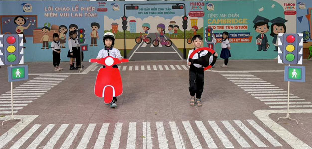 Điểm nhấn của chuỗi hoạt động là các buổi tuyên truyền trực quan tại sân trường với sự tham gia đông đảo của học sinh. Những tình huống giao thông thực tế được tái hiện sinh động, giúp các em dễ dàng nhận diện hành vi đúng – sai khi tham gia giao thông. Đặc biệt, phần thực hành như đội mũ bảo hiểm đúng cách, nhận biết biển báo giao thông hay tham gia các trò chơi tương tác đã mang lại không khí hào hứng, sôi nổi.