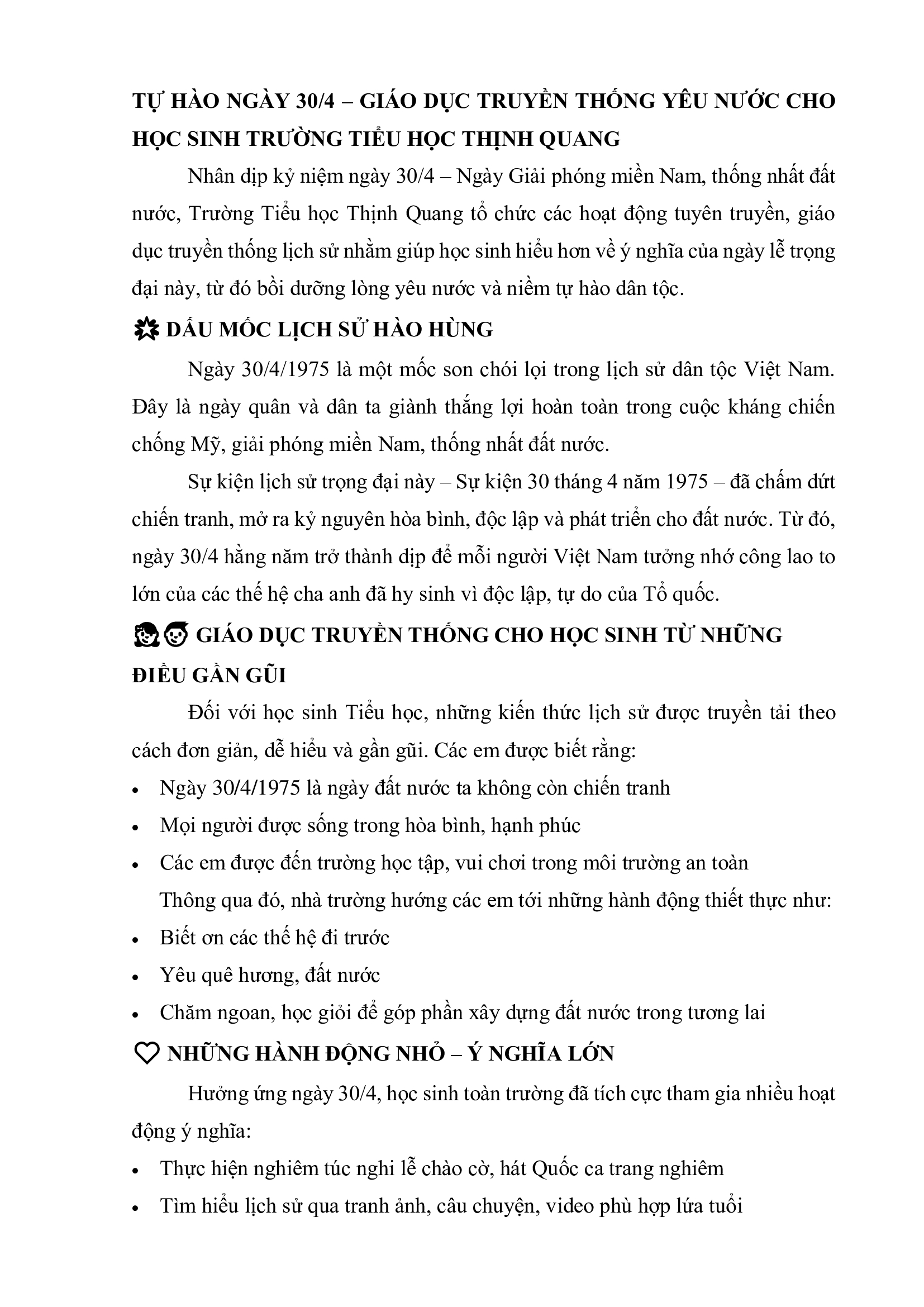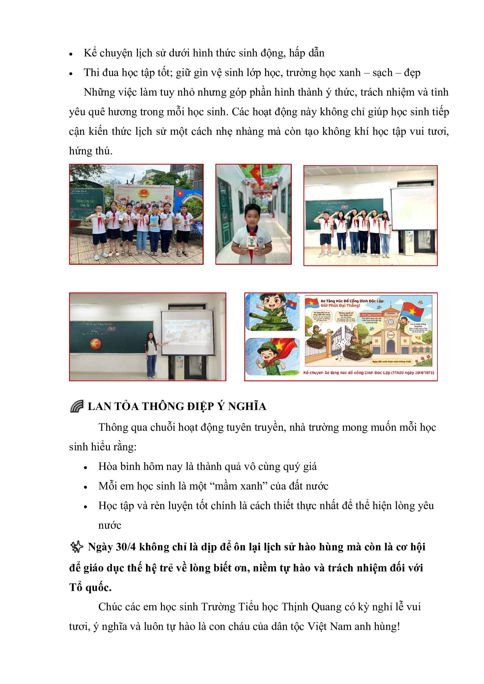 TỰ HÀO NGÀY 30/4 – GIÁO DỤC TRUYỀN THỐNG YÊU NƯỚC CHO HỌC SINH TRƯỜNG TIỂU HỌC THỊNH QUANG
