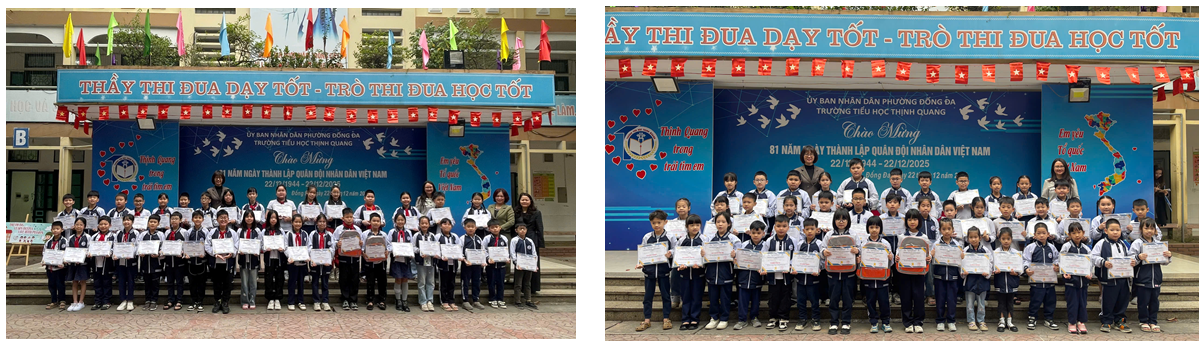 Bên cạnh đó, Trường Tiểu học Thịnh Quang đã tổ chức trao giải Cuộc thi “Thiết kế Slogan song ngữ chào mừng Ngày 22/12 – Ngày thành lập Quân đội Nhân dân Việt Nam”. Với nhiều sản phẩm sáng tạo, nội dung ý nghĩa, góp phần lan tỏa niềm tự hào về truyền thống vẻ vang của Quân đội Nhân dân Việt Nam.