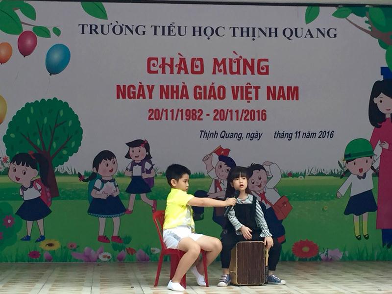 Thứ hai nào cũng vậy, các bạn học sinh không những háo hức đến trường để được tham gia lễ Chào cờ mà còn rất phấn trấn để đón xem các tiết mục văn nghệ, biểu diễn tài năng của các khối lớp. Với chủ đề sinh hoạt tháng 11: Biết ơn thầy cô, các bạn nhỏ khối 2 mang đến ca khúc: Thầy cô cho em mùa xuân và Bông hồng nhỏ. Không những các bạn hát hay, múa dẻo mà còn tự tin thể hiện tài năng chơi nhạc cụ ghi-ta và trống cajon .