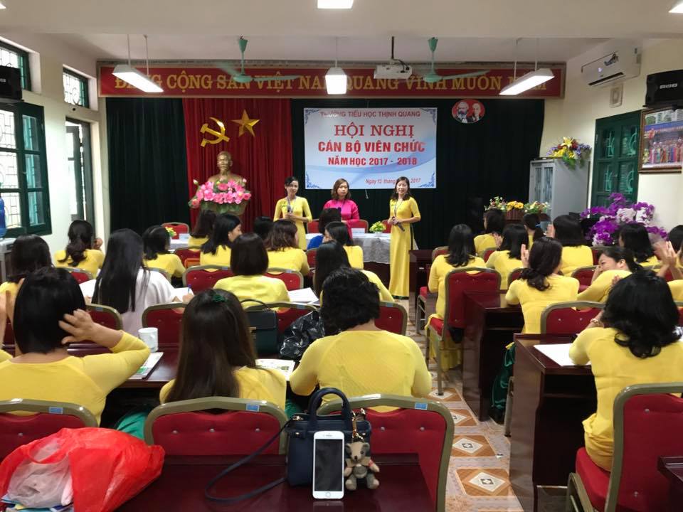 Mở đầu chương trình của Hội nghị, đồng chí Nguyễn Thị Thu Hương – Bí thư chi bộ - Hiệu trưởng nhà trường lên kiểm điểm, đánh giá việc thực hiện nghị quyết Hội nghị CBCNVC năm học 2016 - 2017 và phương hướng nhiệm vụ năm học 2017 – 2018. Tiếp theo chương trình là ý kiến đóng góp của từng tổ nhóm chuyên môn, từng cá nhân trong việc thực hiện nhiệm vụ năm học. Đồng chí Đinh Trịnh Thúy Quỳnh - Chủ tịch Công đoàn báo cáo tổng kết hoạt động Công đoàn năm học 2016 – 2017, triển khai kế hoạch hoạt động Công đoàn năm học 2017 – 2018. Đồng chí Vũ Thanh Hiền – Trưởng ban thanh tra báo cáo tổng kết hoạt động của ban TTND và thông qua kế hoạch TTND nhiệm kỳ năm học 2017 – 2019.