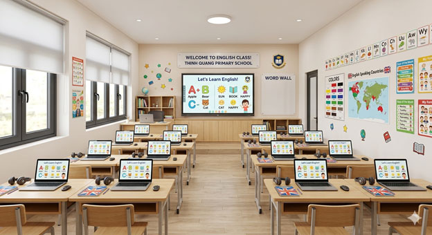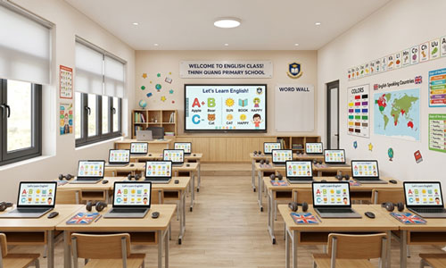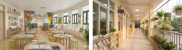 - Hệ thống phòng học và phòng chức năng được đầu tư đồng bộ, hiện đại với 25 phòng học cùng 10 phòng chức năng chuyên biệt như Mỹ thuật, thư viện, khu thể chất… Mỗi không gian không chỉ phục vụ việc dạy và học, mà còn là nơi khơi dậy cảm xúc, nuôi dưỡng năng khiếu và phát triển phẩm chất cá nhân của học sinh. Sự kết hợp giữa yếu tố thẩm mỹ và công năng đã tạo nên một tổng thể hài hòa, góp phần nâng cao chất lượng giáo dục toàn diện.