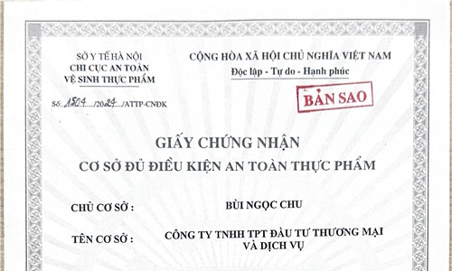 Giấy chứng nhận cơ sở đủ điều kiện an toàn thực phẩm