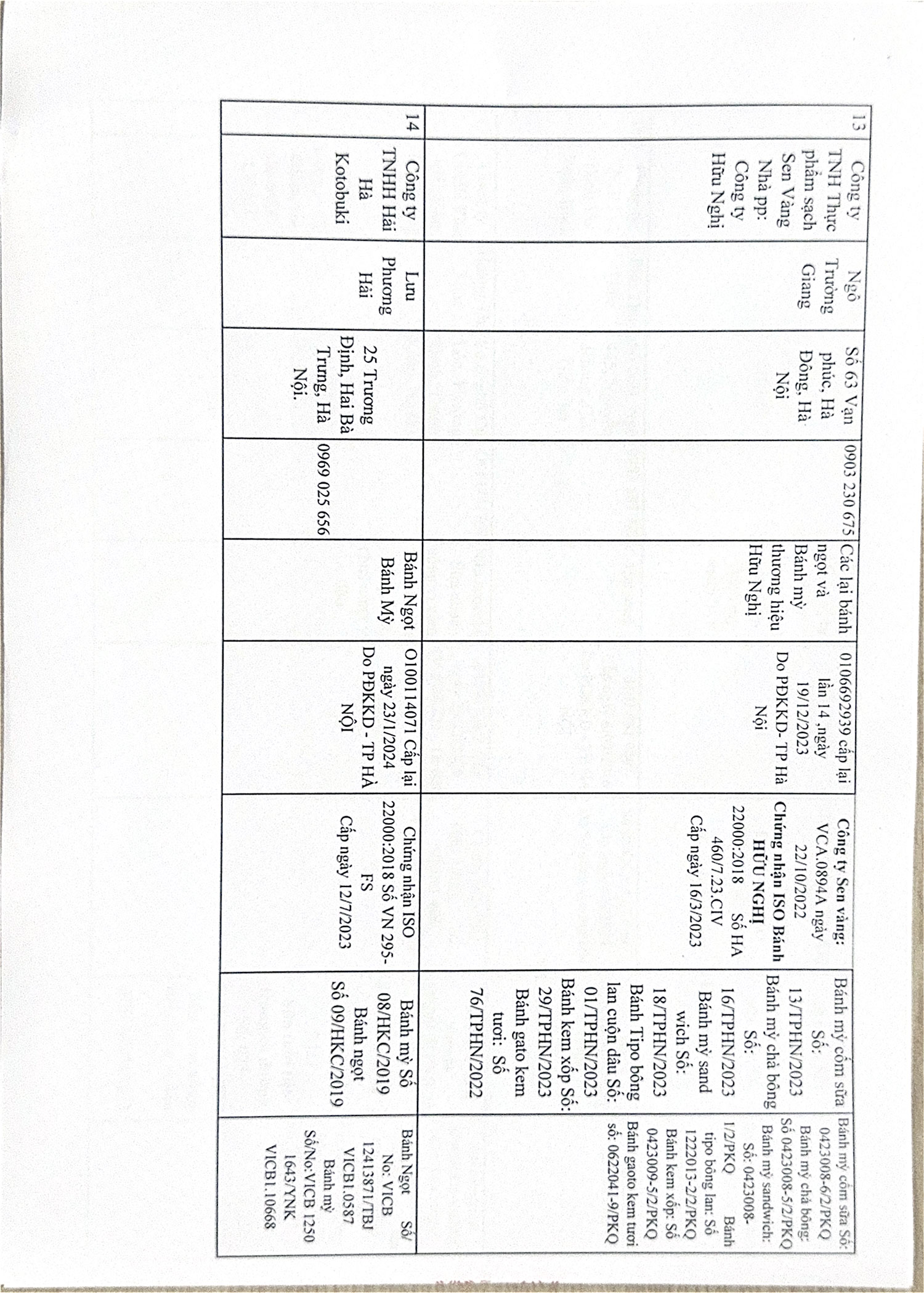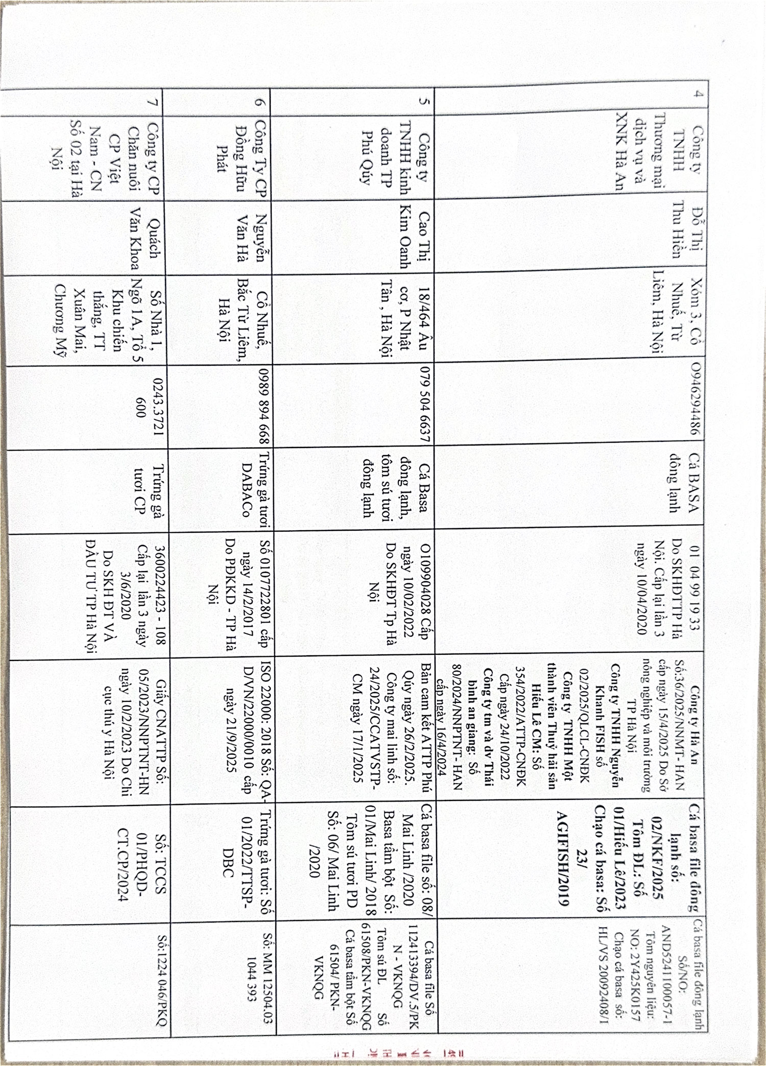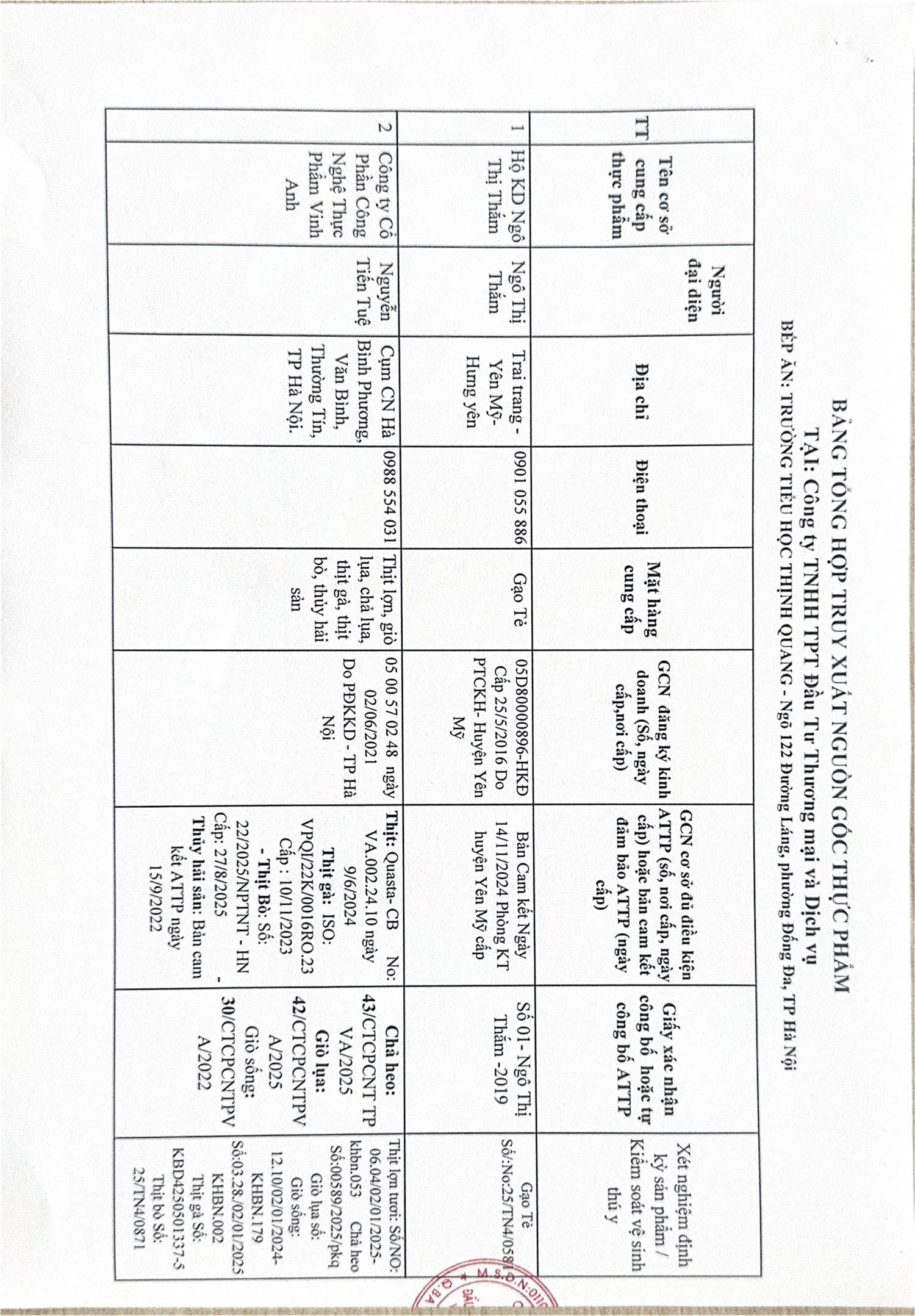 Bảng tổng hợp truy xuất nguồn gốc thực phẩm