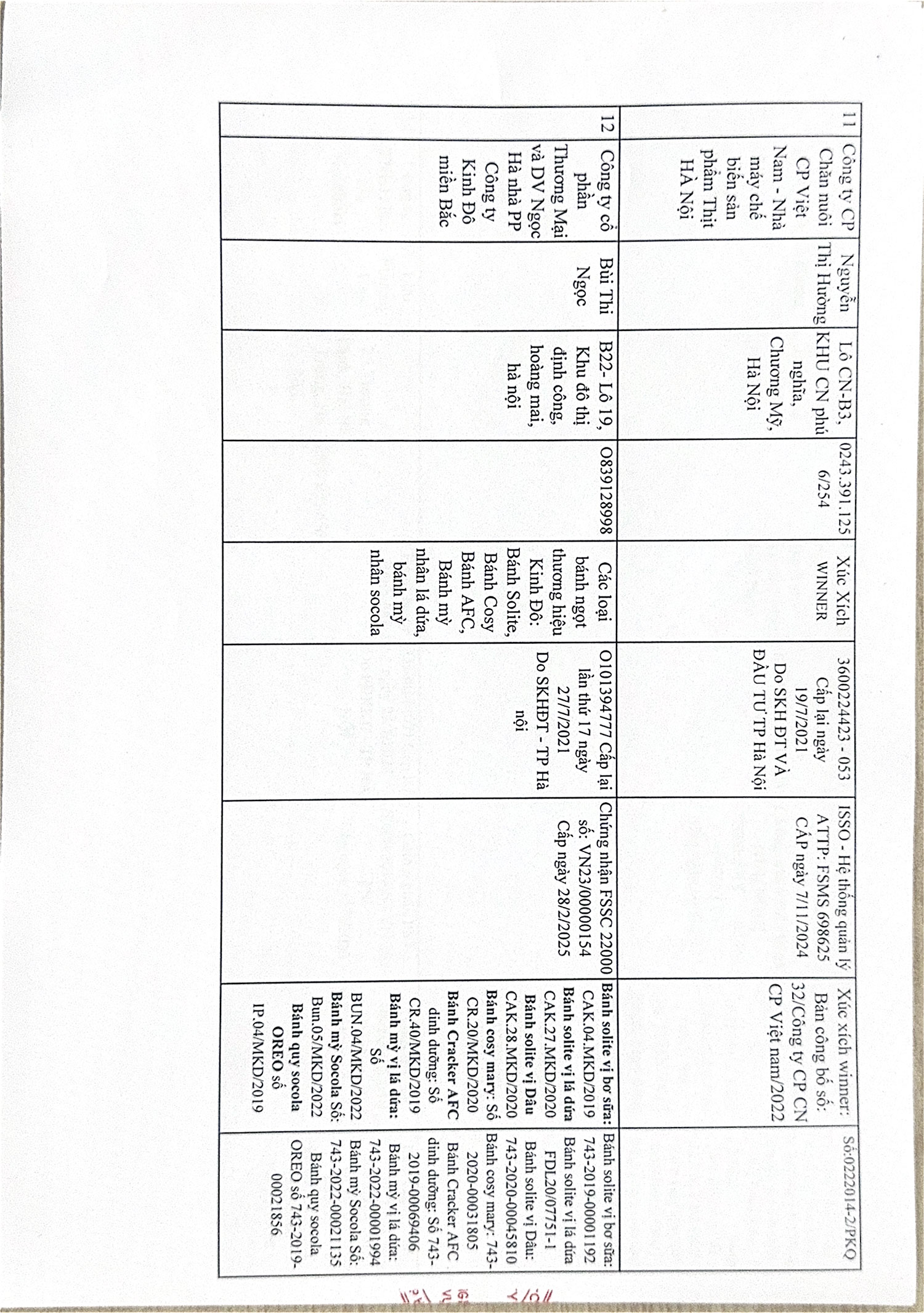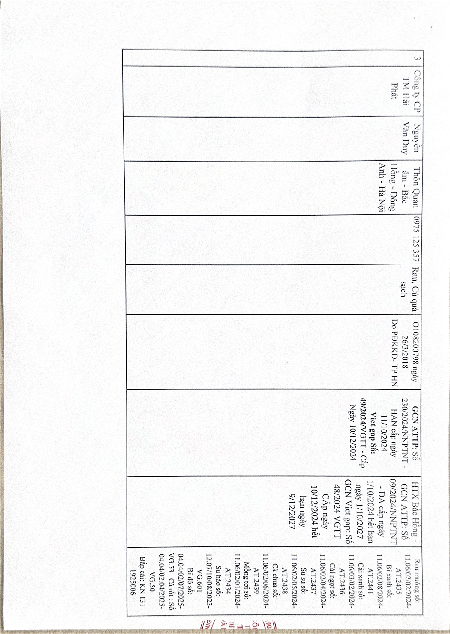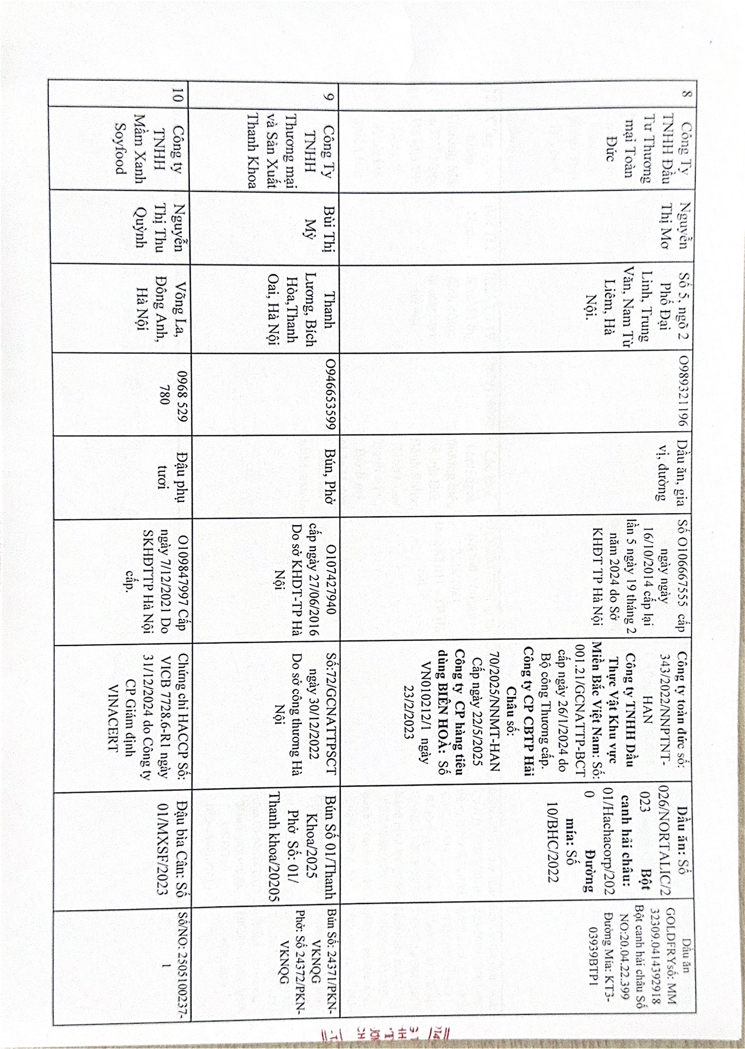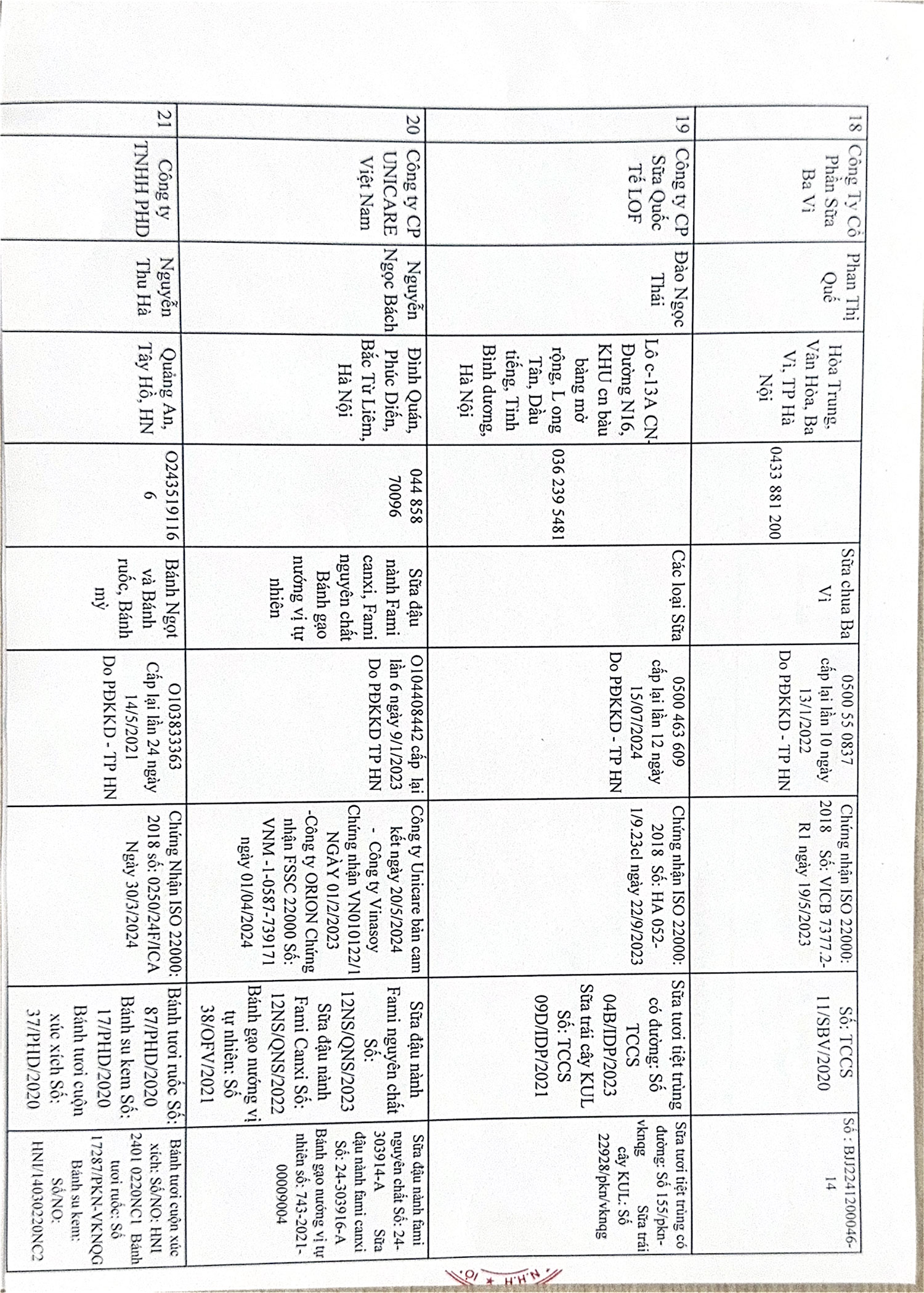 Bảng tổng hợp truy xuất nguồn gốc thực phẩm