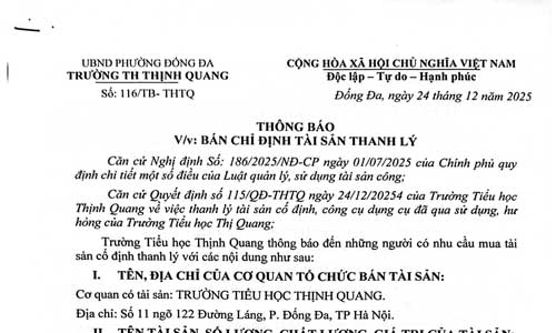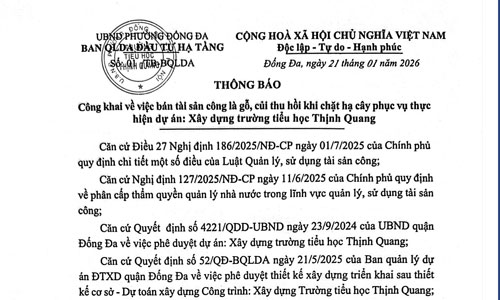 Thông báo công khai vv bán tài sản công là gỗ, củi thu hồi khi chặt hạ cây phục vụ thực hiện dự án: Xây dựng trường tiểu học Thịnh Quang