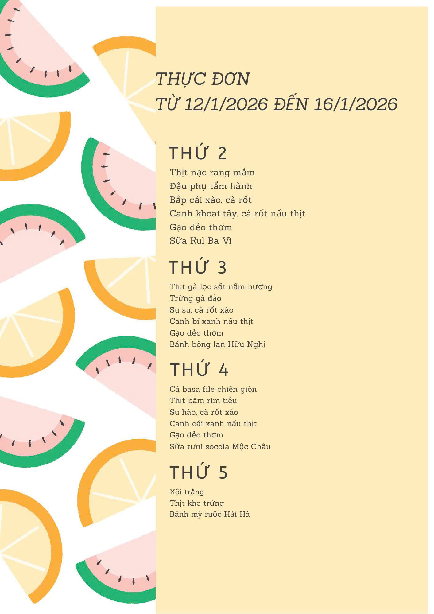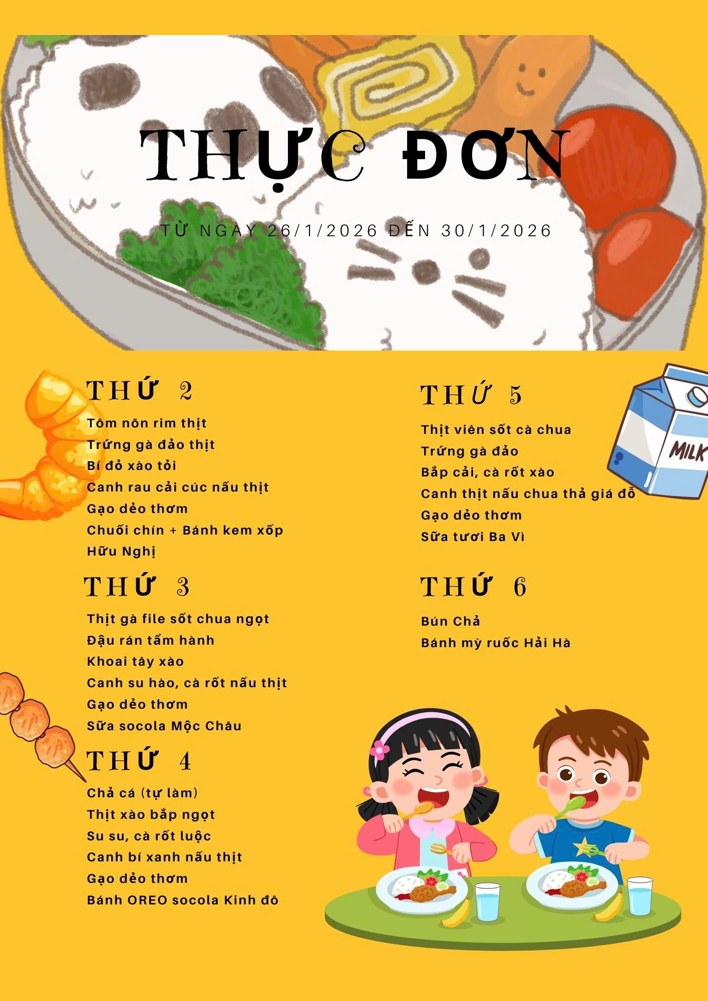 Thực đơn tháng 1/2026