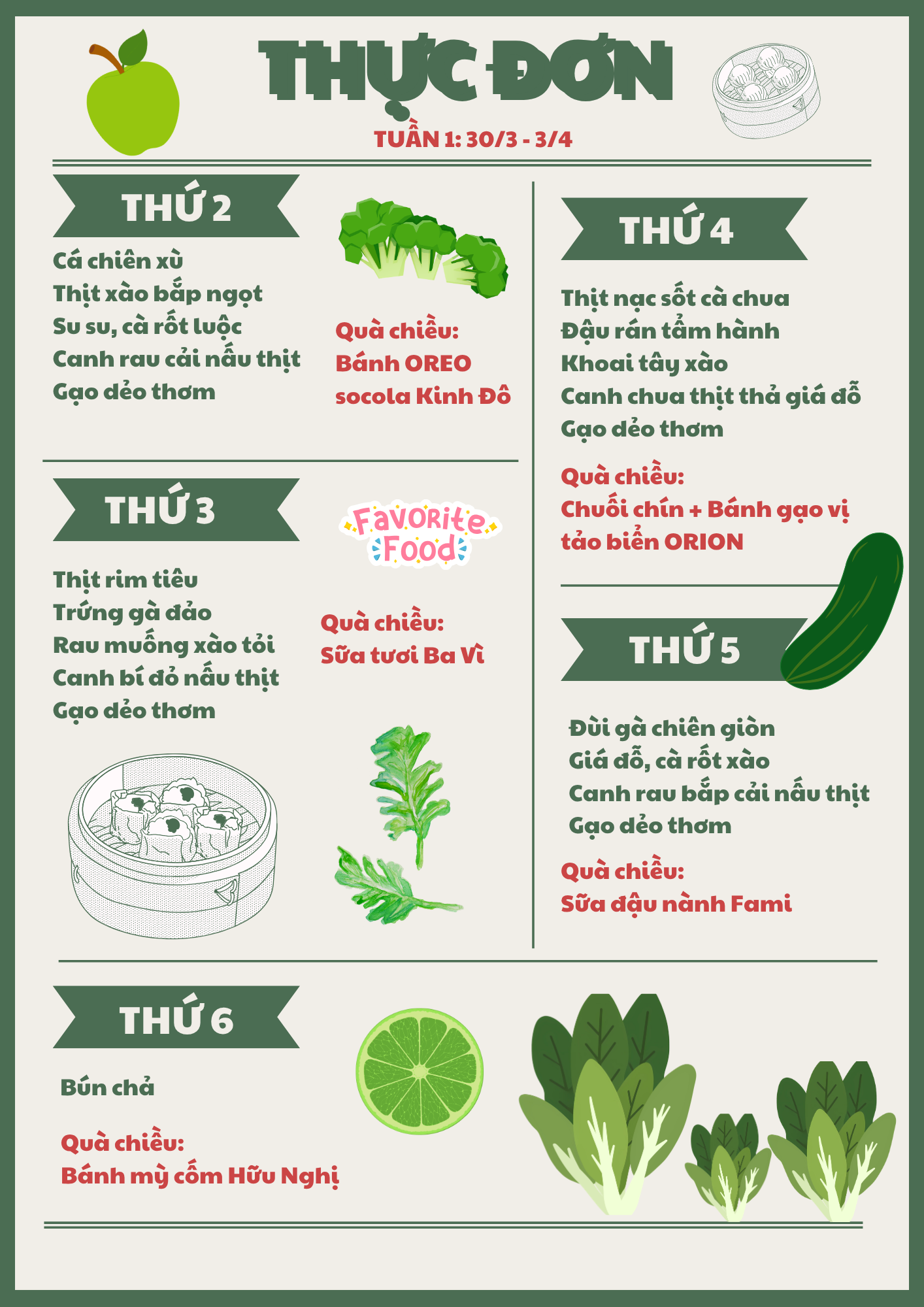 Thực đơn tháng 3/2026