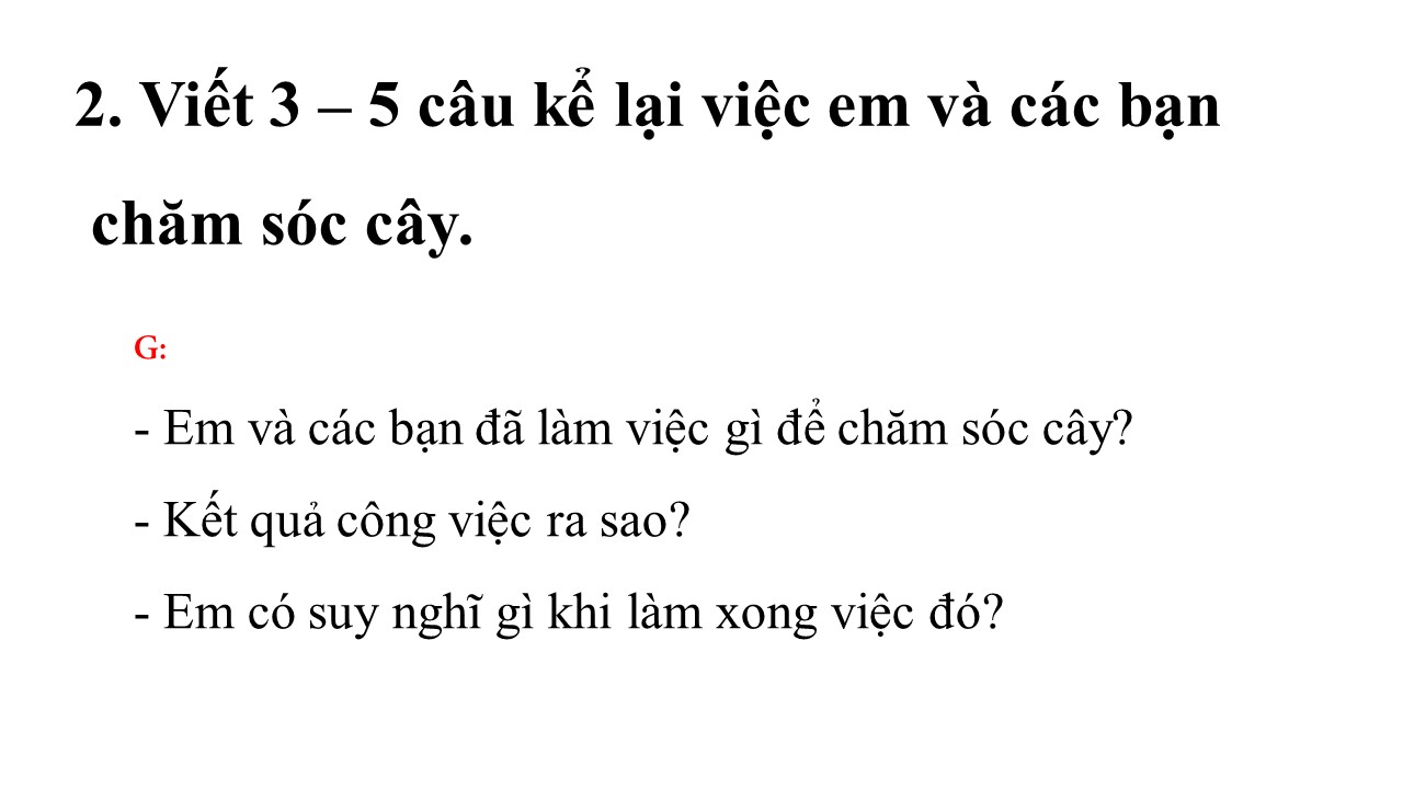 TTiếng Việt 2-Tuần 21-Bài 2- luyện tập 2 Viết đoạn văn về việc chăm sóc cây cối
