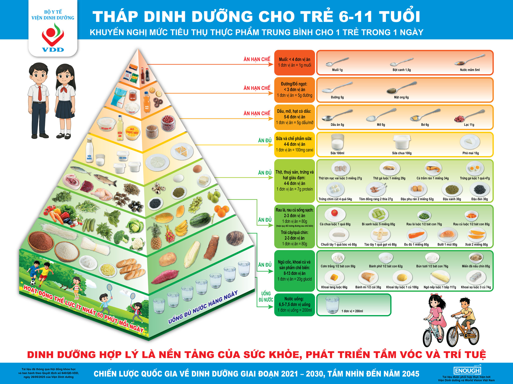 Tháp dinh dưỡng cho trẻ 6 - 11 tuổi